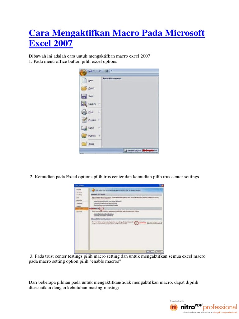 Microsoft excel versi 2007 ini memberikan anda lebih banyak kemudahan saat bekerja dibanding excel versi sebelumnya. Mengenal microsoft excel 2007 i. Start > all programs > microsoft office > microsoft office excel 2007. Pada trust center testings pilih macro setting dan untuk mengaktifkan semua excel macro pada macro setting option pilih enable macros (not recommended, potentially.